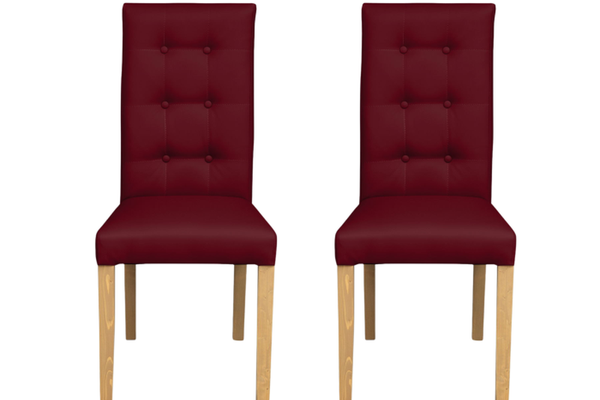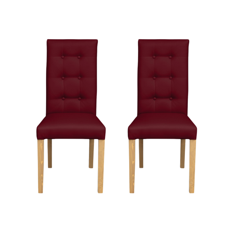 Set 2 scaune living TEO LUX, picioare lemn natur, piele ecologica bordo, 46x60x98 cm