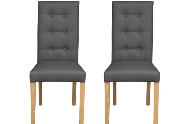 Set 2 scaune living TEO LUX, picioare lemn natur, piele ecologica gri, 46x60x98 cm