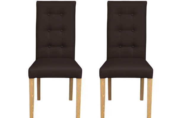 Set 2 scaune living TEO LUX, picioare lemn natur, piele ecologica maro inchis, 46x60x98 cm