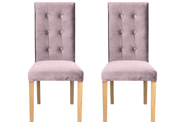 Set 2 scaune living TEO LUX, picioare lemn natur, stofa roz pudra, 46x60x98 cm