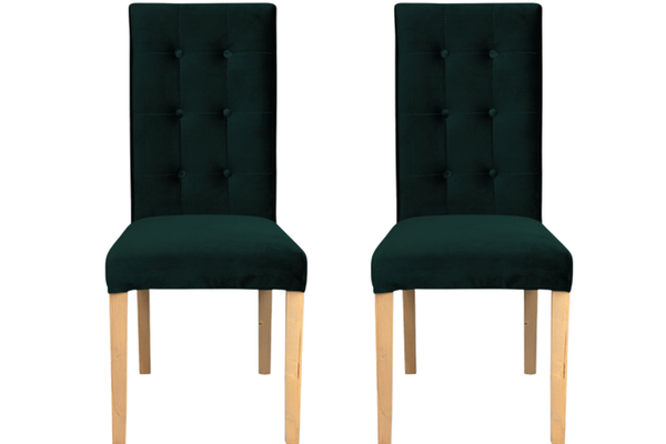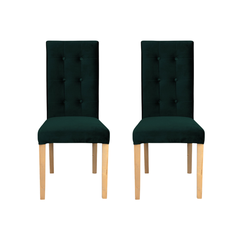 Set 2 scaune living TEO LUX, picioare lemn natur, stofa verde smarald, 46x60x98 cm