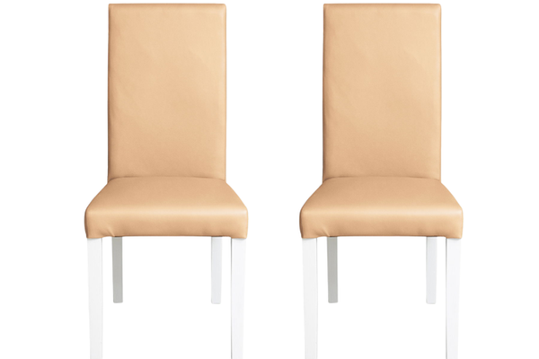 Set 2 scaune living TEO, picioare lemn alb, piele ecologica bej, 46x60x98 cm