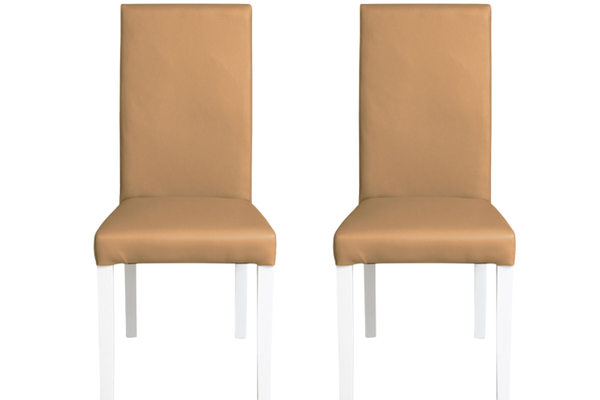 Set 2 scaune living TEO, picioare lemn alb, piele ecologica bej inchis, 46x60x98 cm