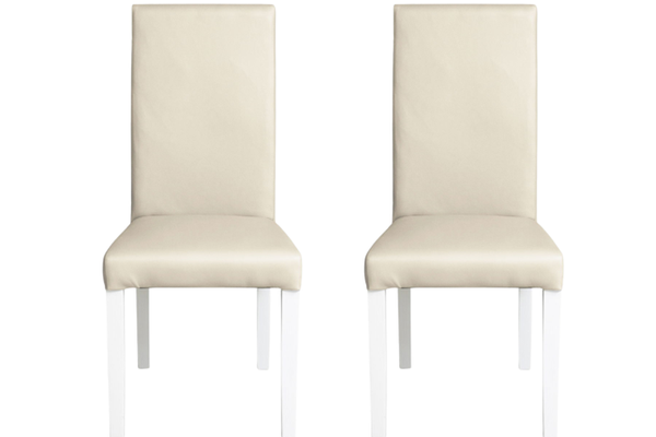 Set 2 scaune living TEO, picioare lemn alb, piele ecologica crem, 46x60x98 cm