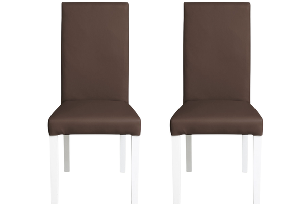 Set 2 scaune living TEO, picioare lemn alb, piele ecologica maro deschis, 46x60x98 cm