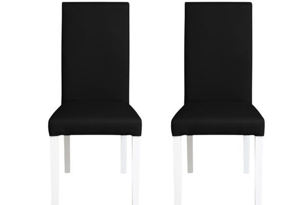 Set 2 scaune living TEO, picioare lemn alb, piele ecologica negru, 46x60x98 cm