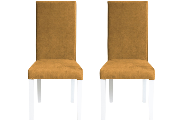 Set 2 scaune living TEO, picioare lemn alb, stofa z mustar, 46x60x98 cm
