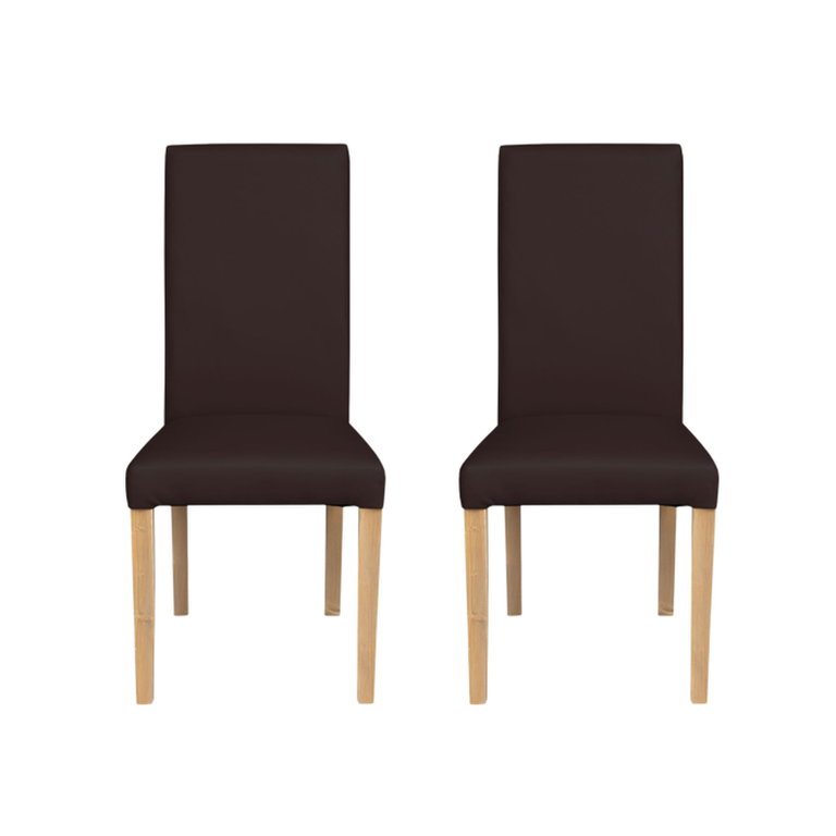 Set 2 scaune living TEO, picioare lemn natur, piele ecologica maro inchis, 46x60x98 cm
