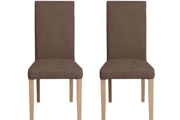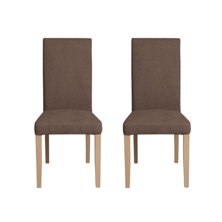 Set 2 scaune living TEO, picioare lemn natur, stofa maro, 46x60x98 cm