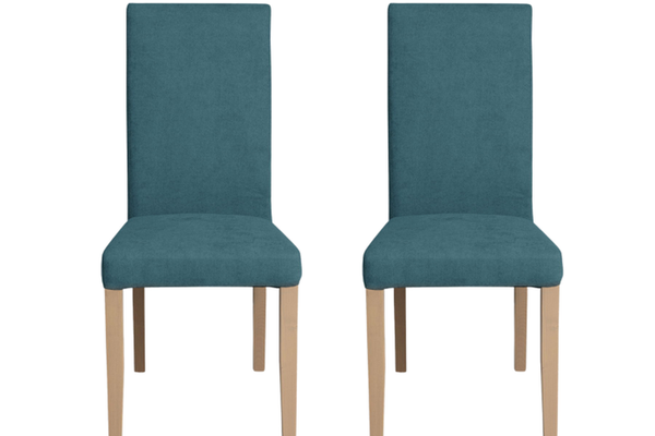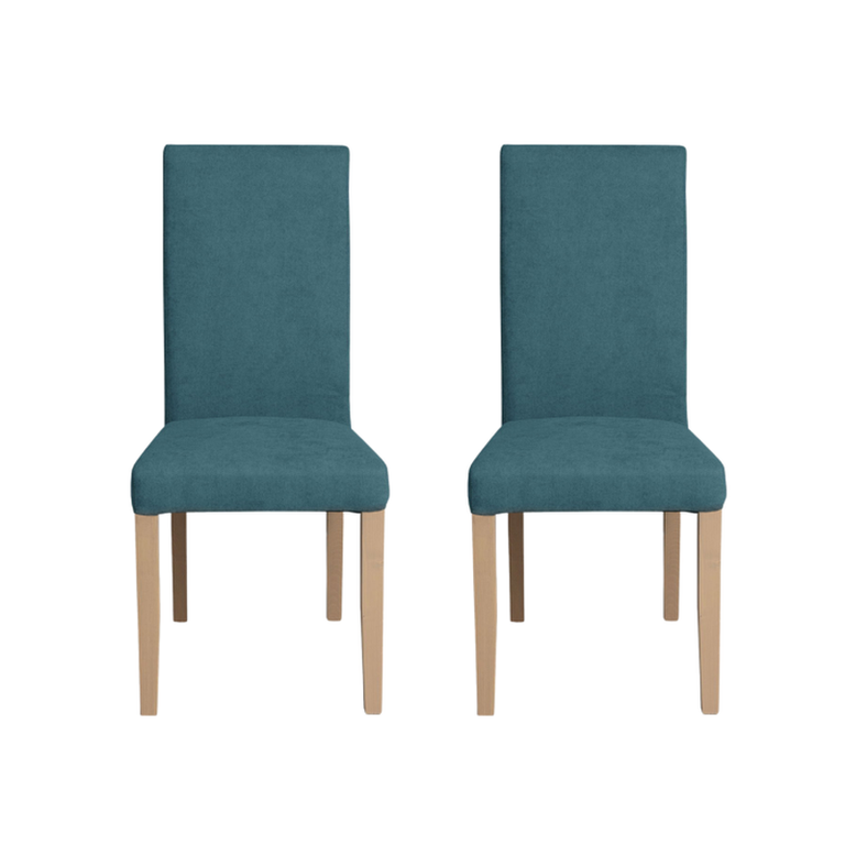 Set 2 scaune living TEO, picioare lemn natur, stofa turcoaz, 46x60x98 cm