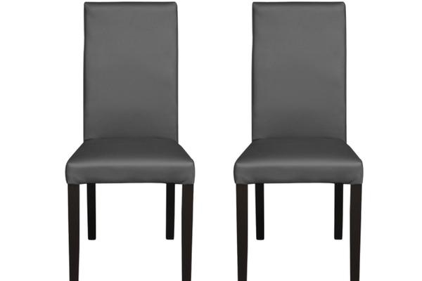 Set 2 scaune living TEO, picioare lemn wenge, piele ecologica gri, 46x60x98 cm