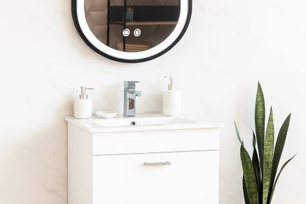 Set Baza cu Lavoar si Oglinda cu iluminare LED, seria 067, cu sertare, 50 cm, alb