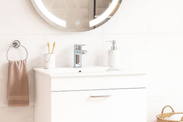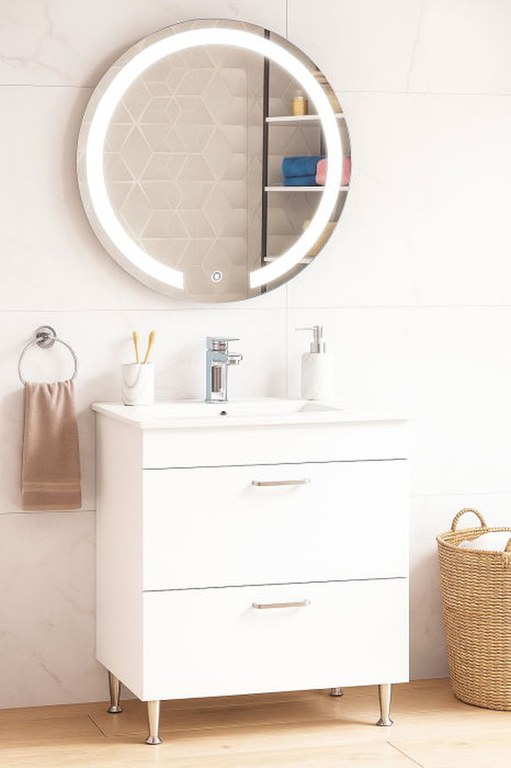 Set Baza cu Lavoar si Oglinda cu iluminare LED, seria 067, cu sertare, 60 cm, alb