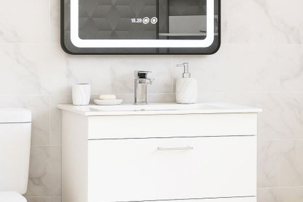 Set Baza cu Lavoar si Oglinda cu iluminare LED, seria 067, cu sertare, 70 cm, alb