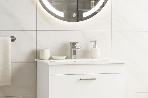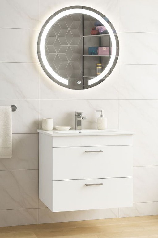 Set Baza cu Lavoar si Oglinda cu iluminare LED, seria 067, suspendata cu sertare, 60 cm, alb