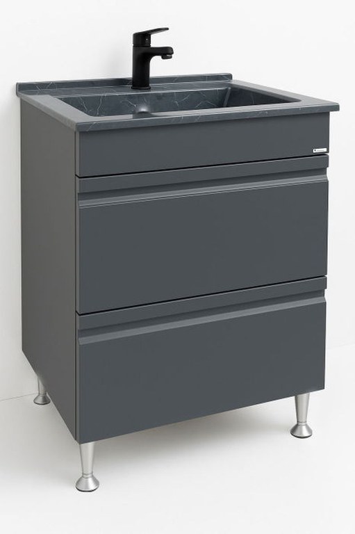 Set Baza front MDF si Lavoar granit seria 486, cu sertare, 60 cm, antracit