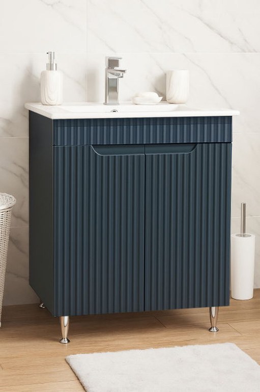 Dimensiuni totale: L 60 cm H 81 cm l 46 cm Front din MDF infoliat si laterale din PAL Tip balamale: Soft close Culorile pot diferi usor in realitate datorita limitarilor tehnologice Bateria, sifonul sau alte obiecte decorative ce apar...