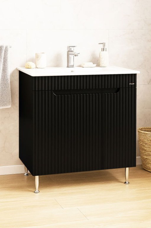 Set Baza front MDF si Lavoar seria 033, 80 cm, negru