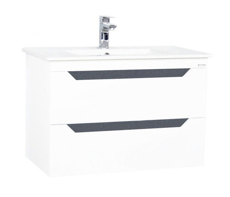 Set Baza front MDF si Lavoar, seria 056, 80 cm, suspendata cu sertare, alb antracit
