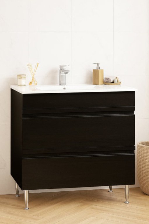 Set Baza front MDF si Lavoar seria 086, cu sertare, montat, 80 cm, negru