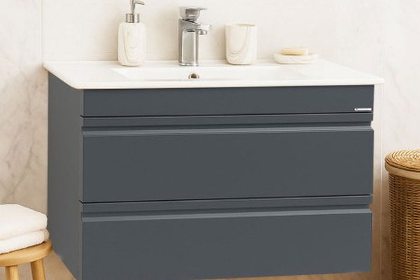 Set Baza front MDF si Lavoar seria 086, suspendata, cu sertare, montat, 80 cm, antracit