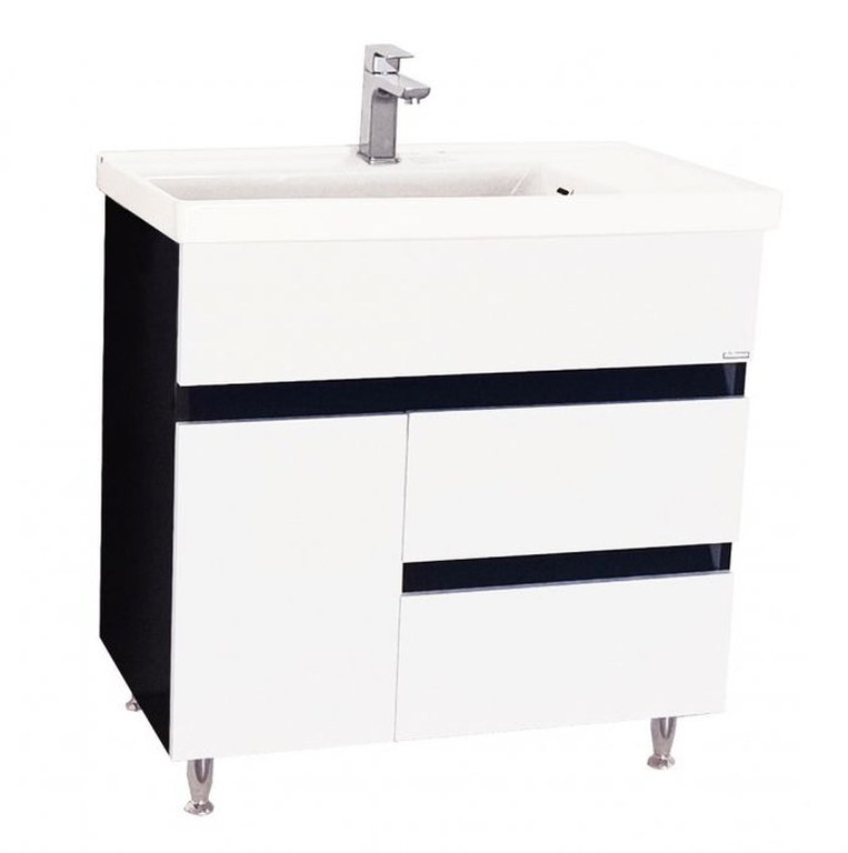Set Baza front MDF si Lavoar seria 288, cu sertare, 80 cm, alb + negru
