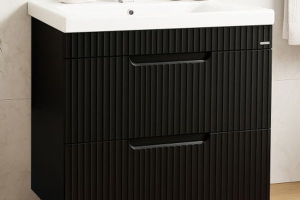 Set Baza front MDF si Lavoar seria 733, cu sertare, 80 cm, negru
