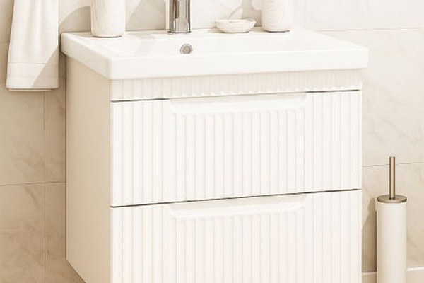 Set Baza front MDF si Lavoar seria 733, suspendata, cu sertare, 60 cm, alb rustic