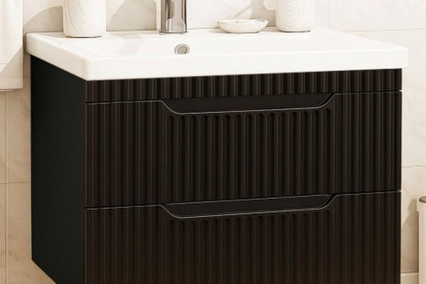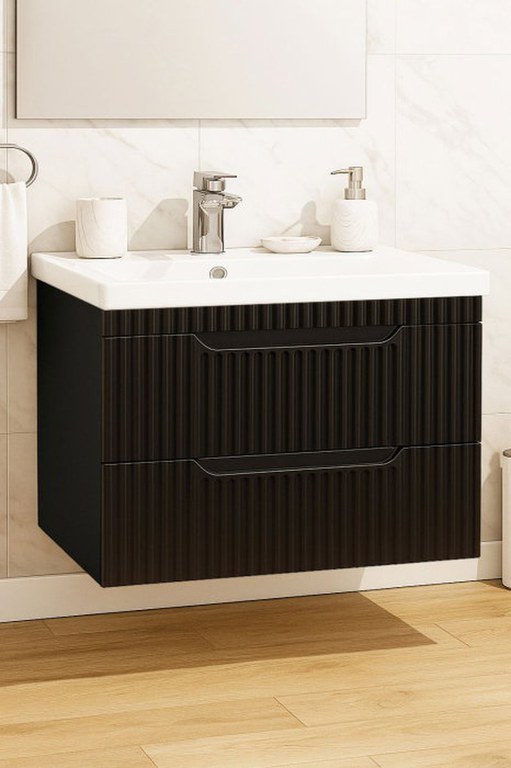 Set Baza front MDF si Lavoar seria 733, suspendata, cu sertare, montat, 80 cm, negru