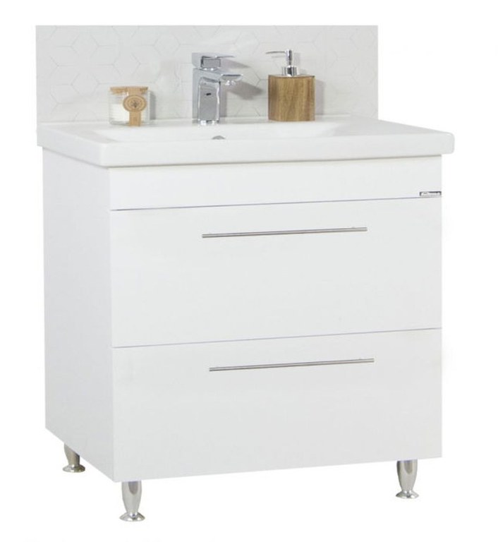 Set Baza front MDF si Lavoar seria 754, cu sertare, 80 cm, alb
