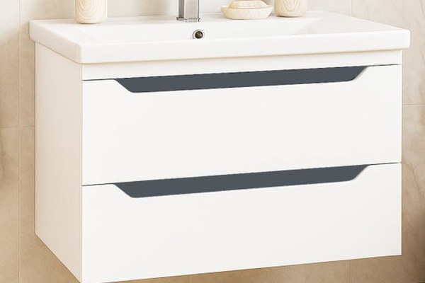 Set Baza front MDF si Lavoar seria 756, suspendata, cu sertare, montat, 80 cm, alb + antracit