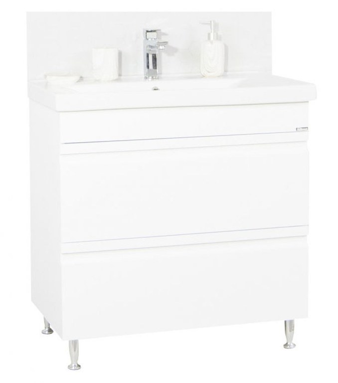 Set Baza front MDF si Lavoar seria 786, cu sertare, 80 cm, alb