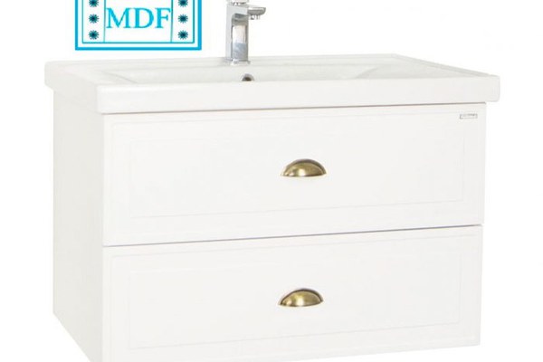 Set Baza front MDF si Lavoar seria 796, suspendata cu sertare, 80 cm, alb rustic