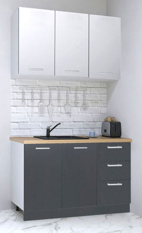 Set bucatarie GERMANIA 120 cm, 4 corpuri, 3 sertare, blat gros, antracit + alb