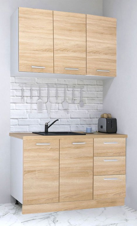 Set bucatarie GERMANIA 120 cm, 4 corpuri, 3 sertare, blat gros, sonoma