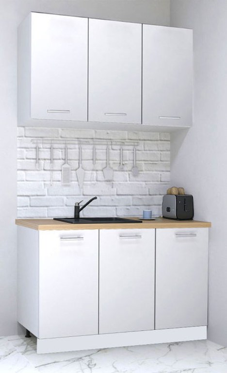 Set bucatarie GERMANIA 120 cm, 4 corpuri, blat gros, alb