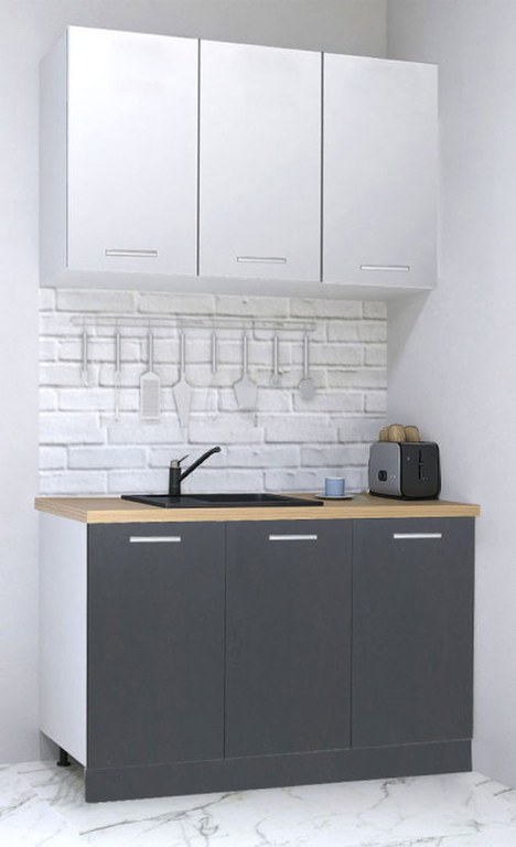 Set bucatarie GERMANIA 120 cm, 4 corpuri, blat gros, antracit + alb