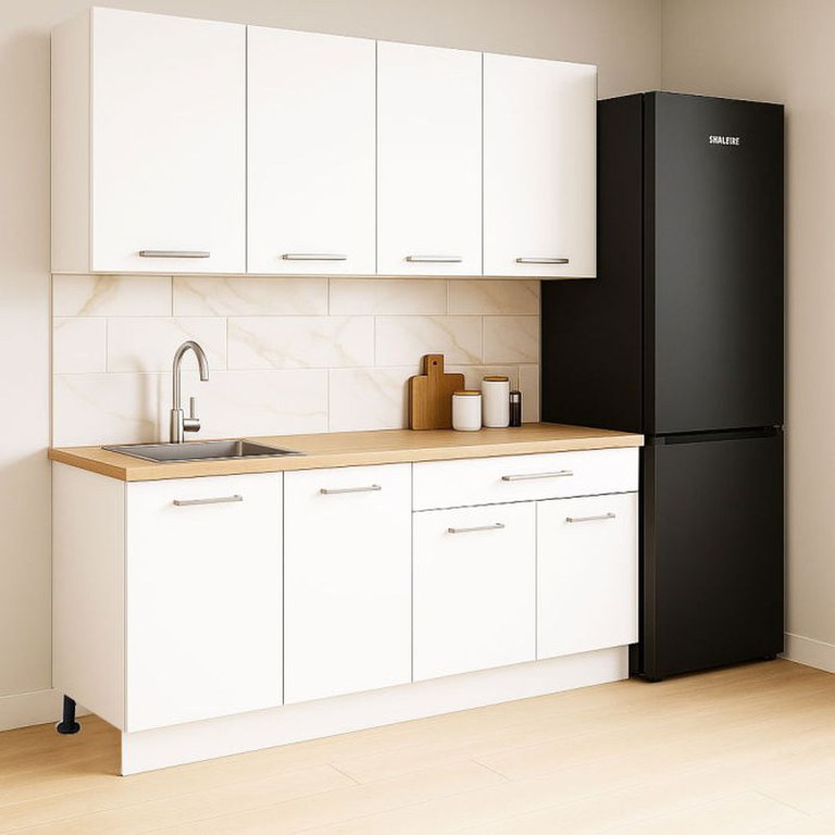 Set bucatarie GERMANIA 160 cm, 4 corpuri, 1 sertar, blat gros, alb