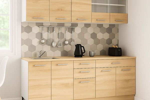 Set bucatarie GERMANIA 200 cm, 6 corpuri, 4 sertare, blat gros, sonoma