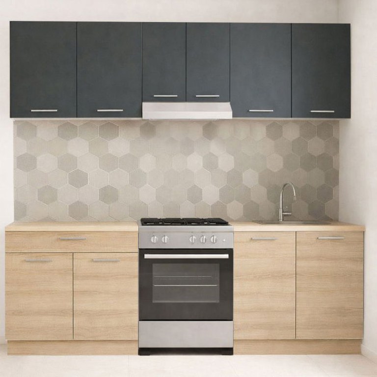 Set bucatarie GERMANIA 220 cm, 5 corpuri, 1 sertar, blat gros, sonoma + antracit