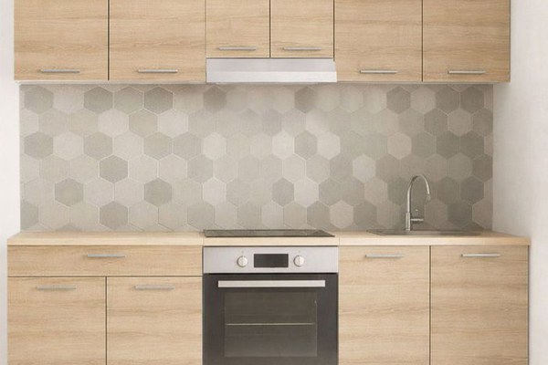 Set bucatarie GERMANIA 220 cm, 6 corpuri, corp cuptor, 1 sertar, blat gros, sonoma