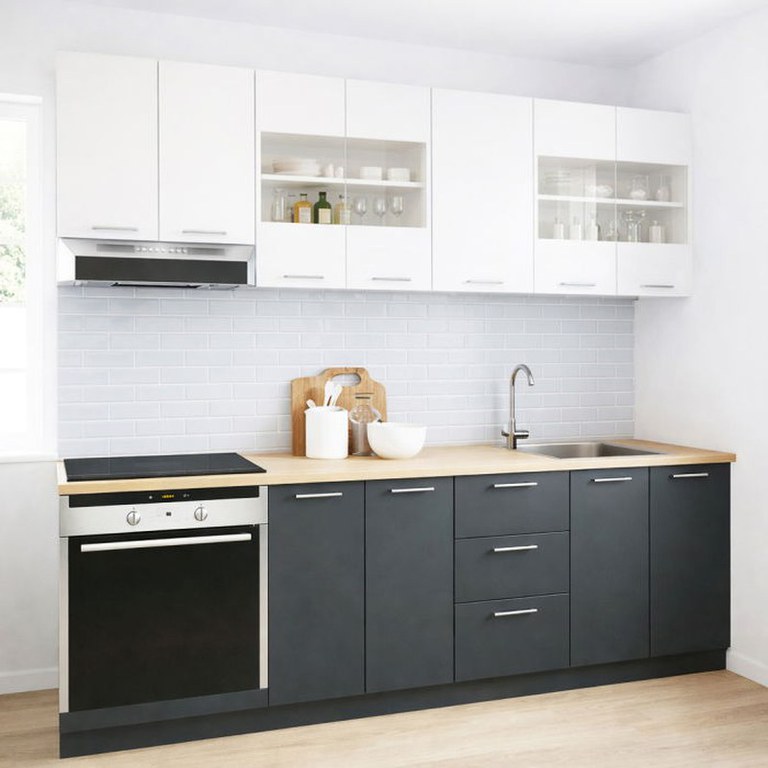 Set bucatarie GERMANIA 220 cm, 8 corpuri, corp cuptor, 3 sertare, blat gros, antracit + alb