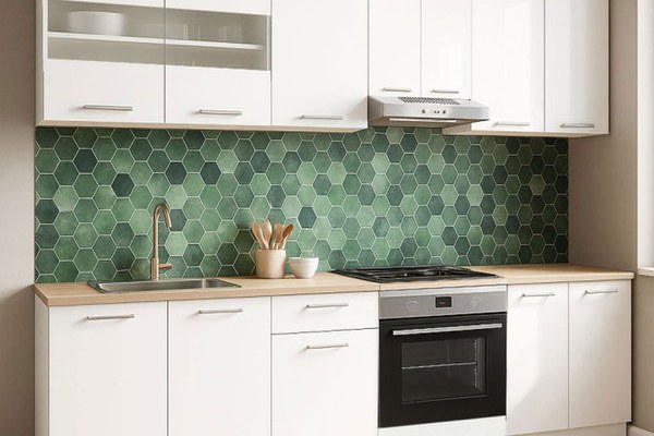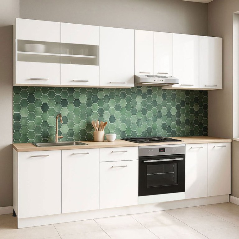 Set bucatarie GERMANIA 240 cm, 8 corpuri, corp cuptor, blat gros, alb