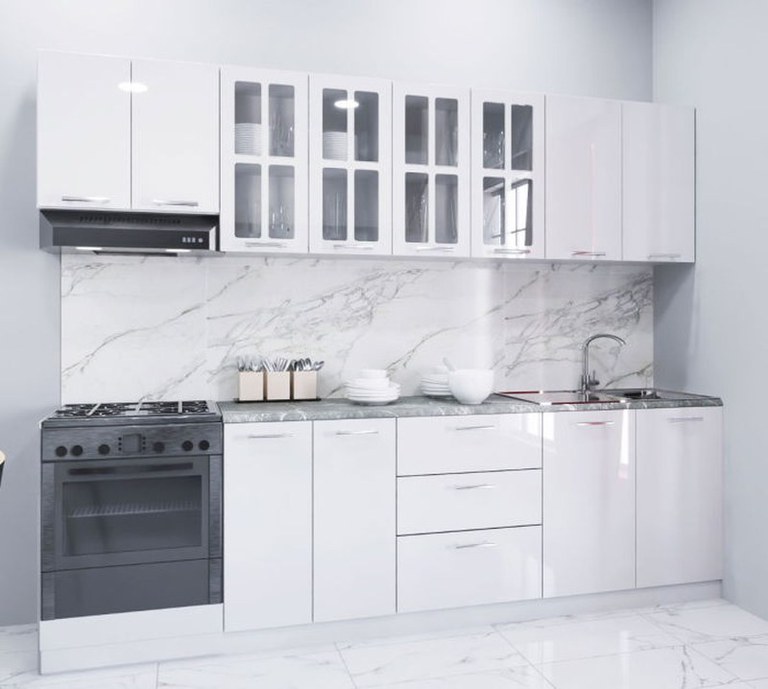 Set bucatarie IRIS 260 cm, 7 corpuri, blat termorezistent, fronturi MDF, alb