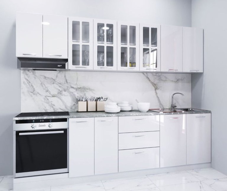 Set bucatarie IRIS 260 cm, 8 corpuri, blat termorezistent, fronturi MDF, alb