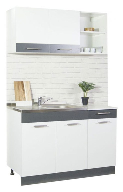 Set bucatarie SARONA 120 cm, 2 corpuri, cu sertar, blat PAL, alb + antracit