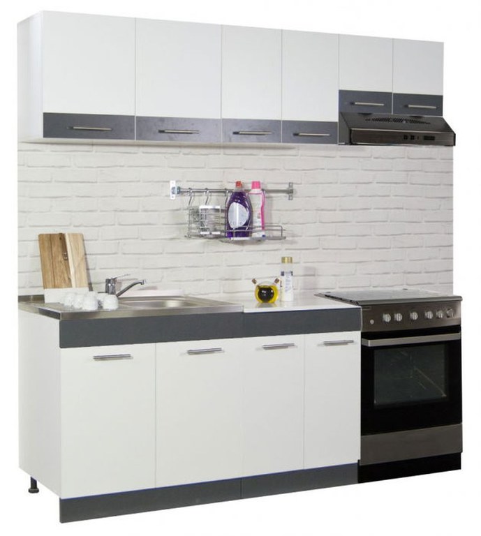 Set bucatarie SARONA 200 cm, 5 corpuri, corp hota, blat termorezistent, alb + antracit