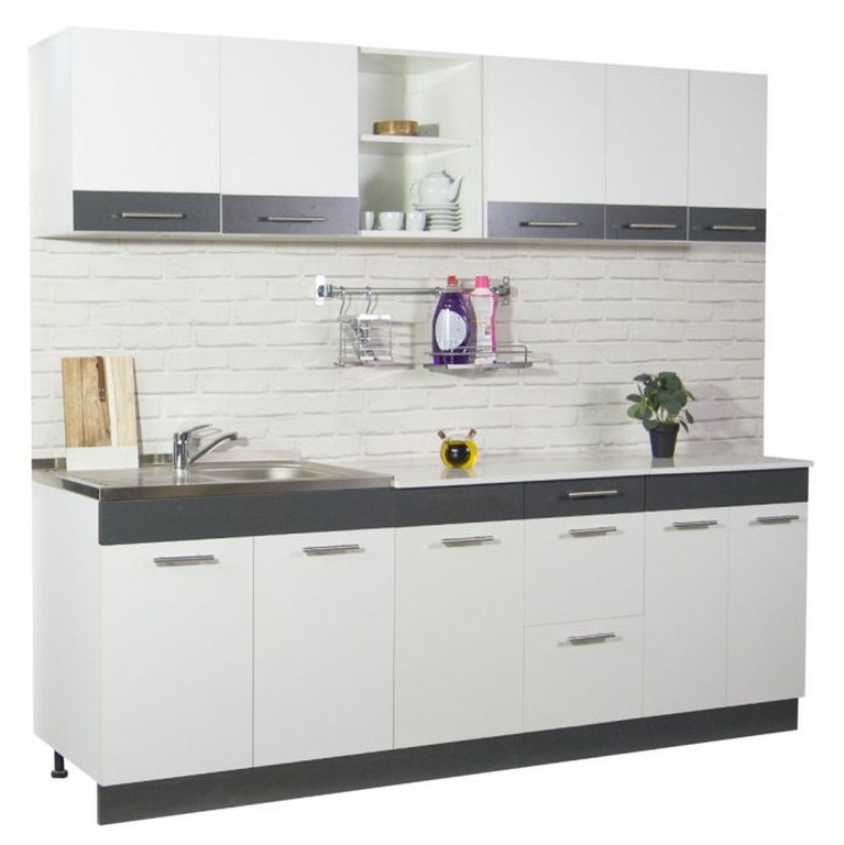 Set bucatarie SARONA 220 cm, 6 corpuri, blat PAL, alb + antracit