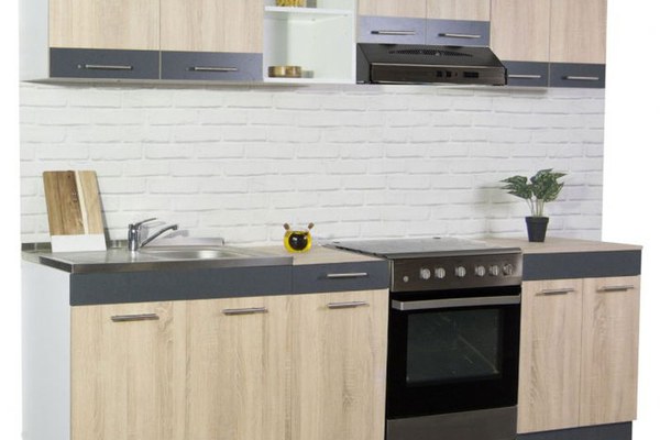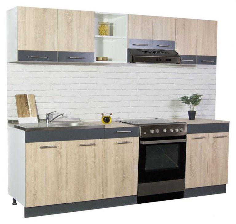 Set bucatarie SARONA 240 cm, 5 corpuri, blat PAL, sonoma + antracit