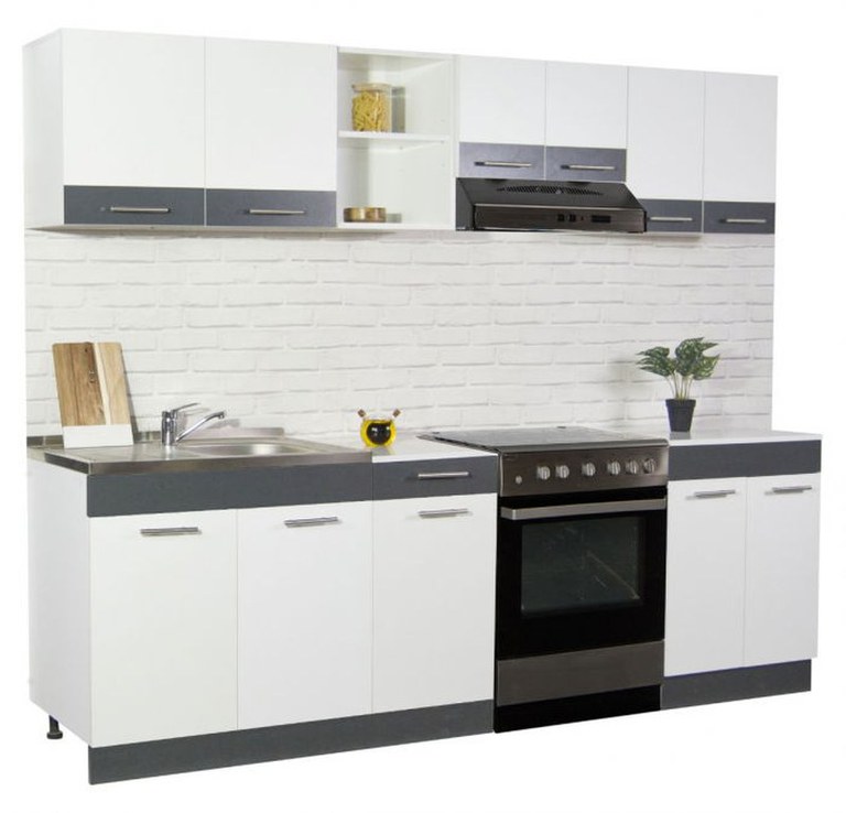 Set bucatarie SARONA 240 cm, 5 corpuri, corp hota, blat PAL, alb + antracit